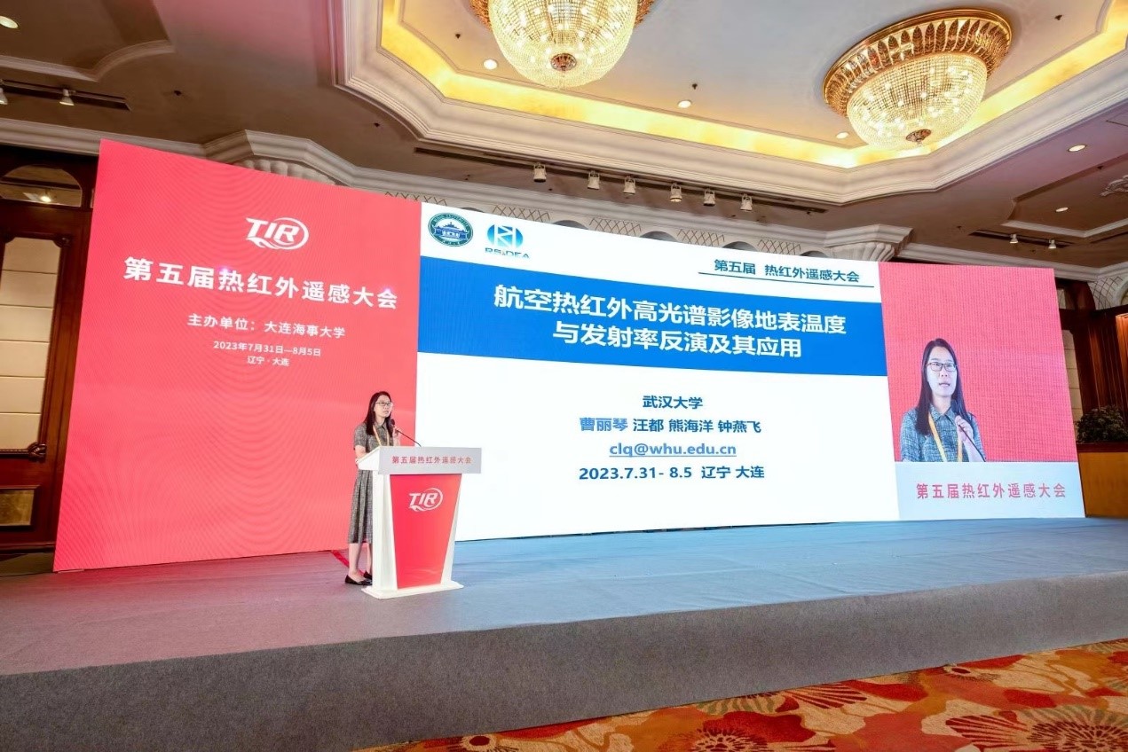 2023年8月1日至3日,由大连海事大学主办,大连市大数据产业发展研究院联合主办,中国科学院、水利部成都山地灾害与环境研究所等16家单位协办的“第五届热红外遥感大会”在大连举行。本次大会邀请来自国内50余所高校、科研机构的300多位专家学者共同参与,以“热红外遥感的最新进展与未来发展”为主题,围绕地气参数遥感反演、定标与真实性检验、遥感信息时空尺度扩展、新型传感器遥感数据获取、多源遥感信息处理、遥感大数据与遥感应用等多个议题进行深度讨论,共同推进遥感领域的合作与发展。 我组老师钟燕飞、曹丽琴,硕士生汪都、熊海洋、赵杭和赵海东参加了此次大会,与专家学者进行了密切交流。曹丽琴老师在大会上作题为《航空傅里叶热红外高光谱影像地表温度和发射率反演及其应用》的报告,并在现场和相关领域研究的国内学者进行了热烈的讨论和交流,相关研究工作获得了大家的肯定与好评。 我组硕士生汪都、熊海洋、赵杭和赵海东在青年论坛研讨会中,与其他参会研究生进行了密切的经验交流和学术总结。